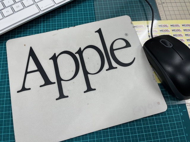 この前の3月で定年退職された先生から、レアなグッズをたくさんもらいました。その中のひとつ、アップルのマウスパッド。