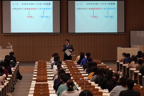 加藤は、専門科目の「国際文化論」のほか、ゼミナール科目を除くと、1年生向けの「現代に生きる」と「人間学総論」に出講します。