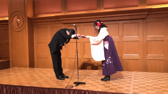 当ゼミの代表が学部長から学位記を授与され、答辞を読み上げる機会をいただきました。光栄です。