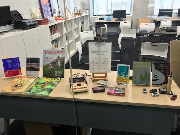 ナゴヤドーム前キャンパスに移転して、ゼミごとに「ゼミ室」があります。加藤ゼミでは、廊下側のガラス張りの壁面を利用して、デパート(?)のショーウィンドウのような感じで、企画展示を実施しています。